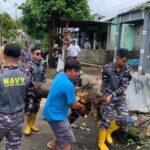 Prajurit Lanudal Manado dan Satgas Penanggulangan Bencana Gerak Cepat Bantu Rumah Warga Tertimpa Pohon Tumbang