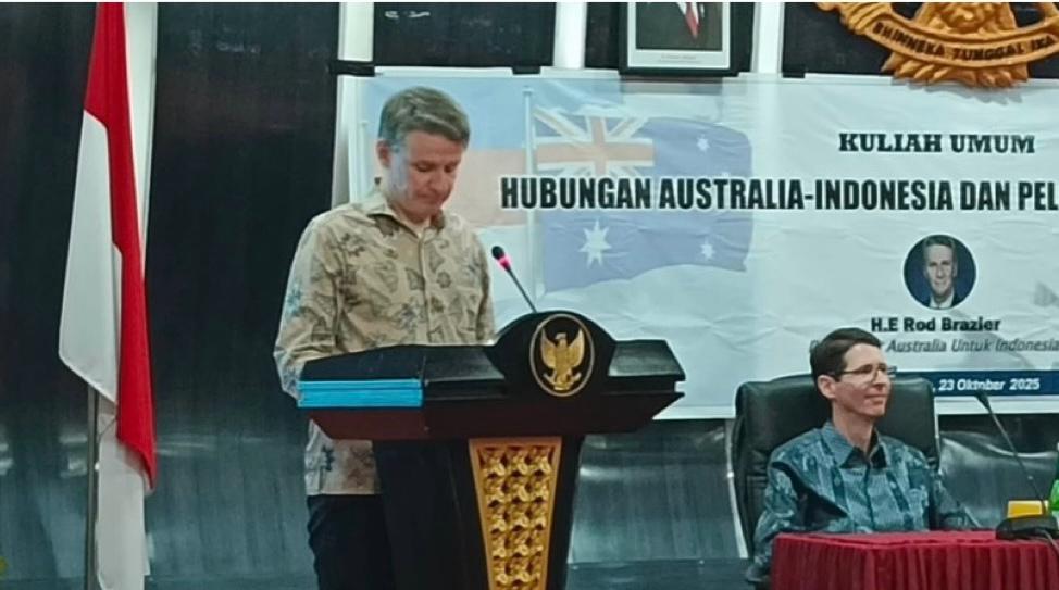 MANADO Nusantaraline.com – Duta Besar Australia untuk Indonesia, Rod Brazier, melakukan kunjungan kerja ke Universitas Sam Ratulangi (Unsrat) Manado, Kamis (23/10/2025). Dalam kunjungan tersebut, ia didampingi Konsul Jenderal Australia untuk Indonesia Timur, Todd Dias, serta sejumlah staf kedutaan.