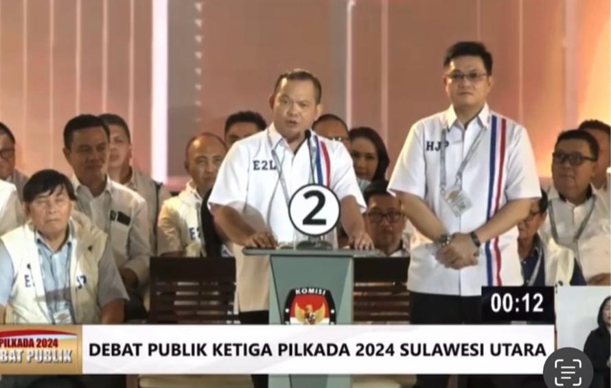 MANADO Nusantaraline.com – Debat ketiga pasangan calon Gubernur dan Wakil Gubernur Sulawesi Utara (Sulut) yang berlangsung pada Selasa malam, 12 November 2024, ini menyajikan momen tak terduga, ketika calon Gubernur Elly E Lasut (E2L) melakukan kesalahan dalam menyebutkan nomor urut paslon.