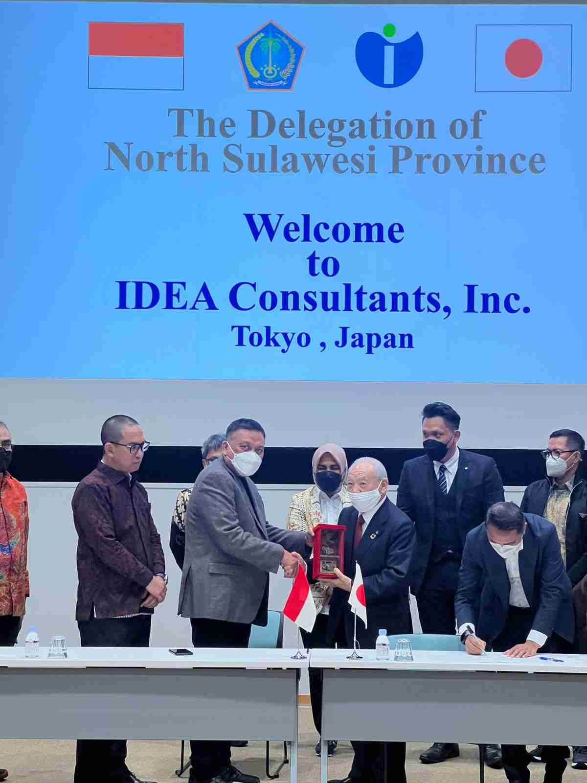 Dalam kesempatan tersebut, Gubernur Olly yang didampingi Ketua DPRD Provinsi dr.Andy Silangen, SpB.KBD, para Bupati/Walikota se-Sulawesi Utara yang turut menjadi Delegasi, Sekretaris Daerah Provinsi Sulut Steve H.A. Kepel ST, M.Si dan Assisten Sekprov Bidang Administrasi Umum Frangky Manumpil, serta Rektor Universitas Sam Ratulangi Prof. Dr. Oktovian Sompie dan Kepala Kanwil Kemenkunham Sulawesi Utara Dr.Ronald Lumbuun, SH, MH juga telah menandatangani Minutes of Meeeting North Sulawesi Province Government and IDEA Consultans Inc Japan yang ditanda tangani oleh Dr Hideo Tabata sebagai CEO IDEA Consultans Inc.