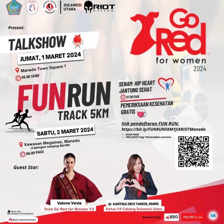 MANADO Nusantaraline.com – Yayasan Jantung Indonesia (YJI) Sulawesi Utara (Sulut) akan mengadakan kampanye ’’Go Red For Women’’ pada 1-2 Maret 2024.