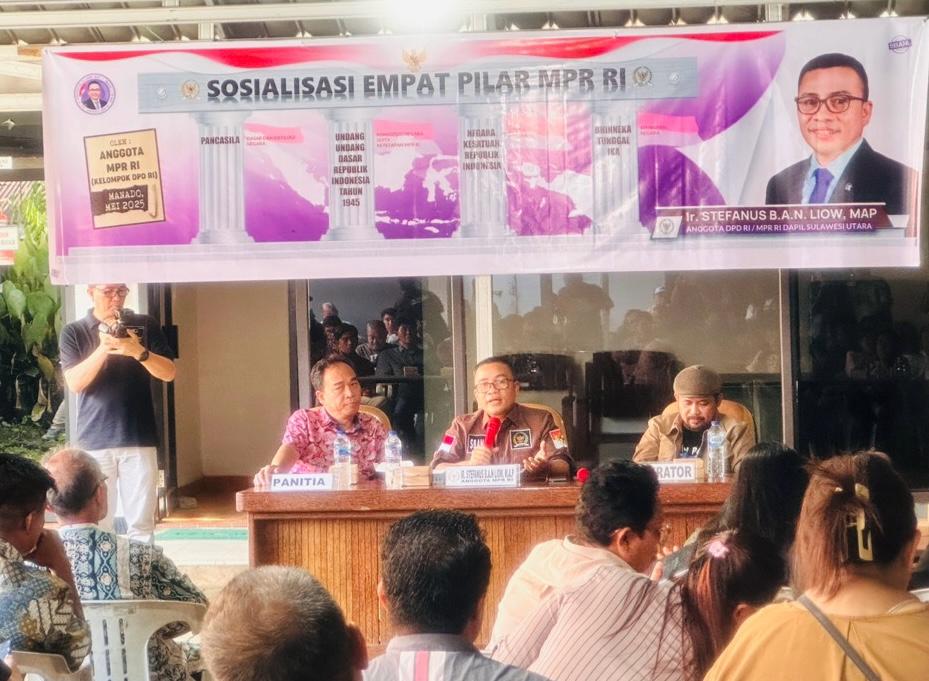 MANADO Nusantaraline.com – Anggota Dewan Perwakilan Daerah (DPD) RI sekaligus Majelis Permusyawaratan Rakyat (MPR) RI, Ir. Stefanus BAN Liow, MAP, menggelar sosialisasi Empat Pilar MPR RI di Kantor Perwakilan DPD RI Sulawesi Utara (Sulut), Kamis (15/5/2025).