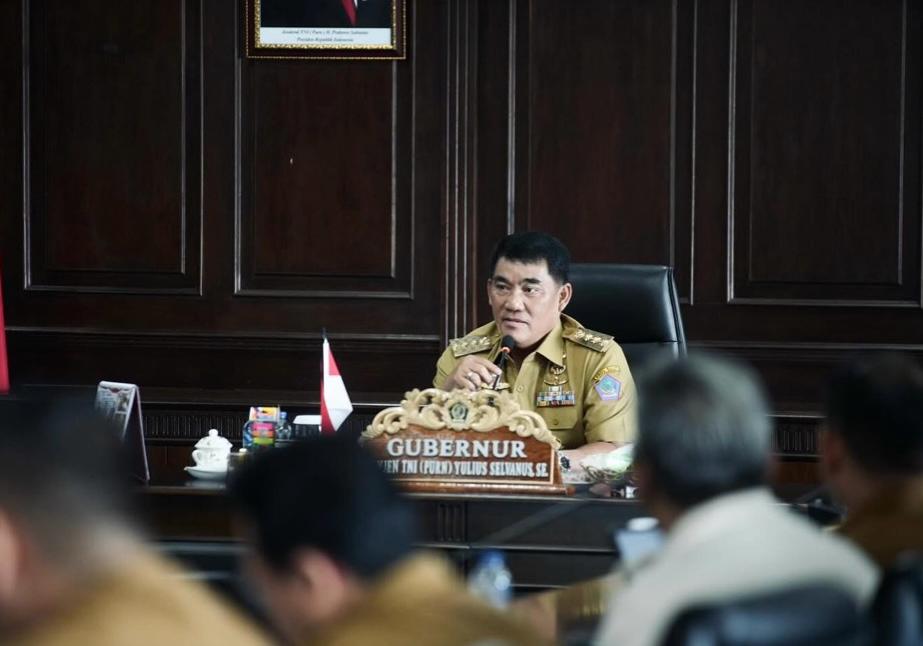 MANADO Nusantaraline.com – Gubernur Sulut Mayjen TNI (Purn) Yulius Selvanus memimpin Rapat Evaluasi dan Pengawasan Realisasi Anggaran (EPRA) APBD Tahun Anggaran 2025, Selasa (14/10/25) dilantai 6 Kantor Gubernur Sulut.