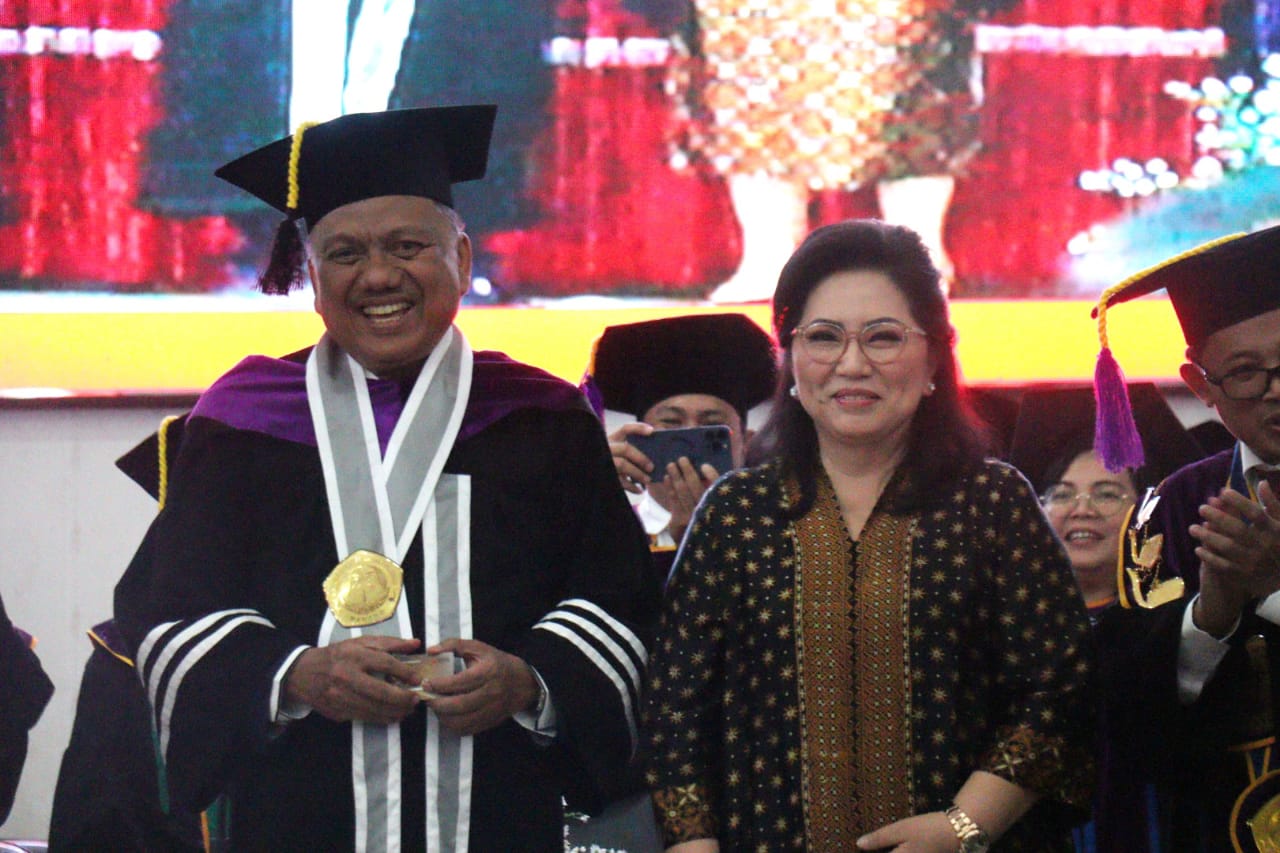 Rektor Unsrat Berty Sompie dalam sambutannya, mengatakan anugerah Doktor HC adalah tradisi akademik yang diberikan kepada seseorang lewat pertimbangan dan kajian bahwa yang bersangkutan telah berjasa serta berkarya luar biasa.