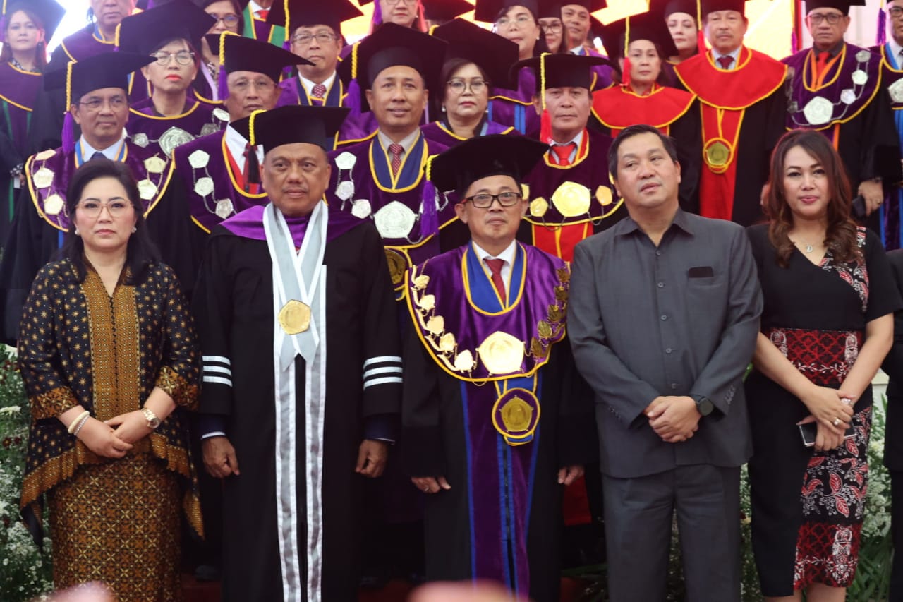 Penganugerahan gelar kepada Prof Dr Olly Dondokambey SE digelar melalui sidang senat terbuka pada Kamis (21/9/2023) yang dipimpin Rektor Unsrat Prof. Dr. Ir. Oktovian Berty Alexander Sompie, M.Eng, IPU, ASEAN.ENG.