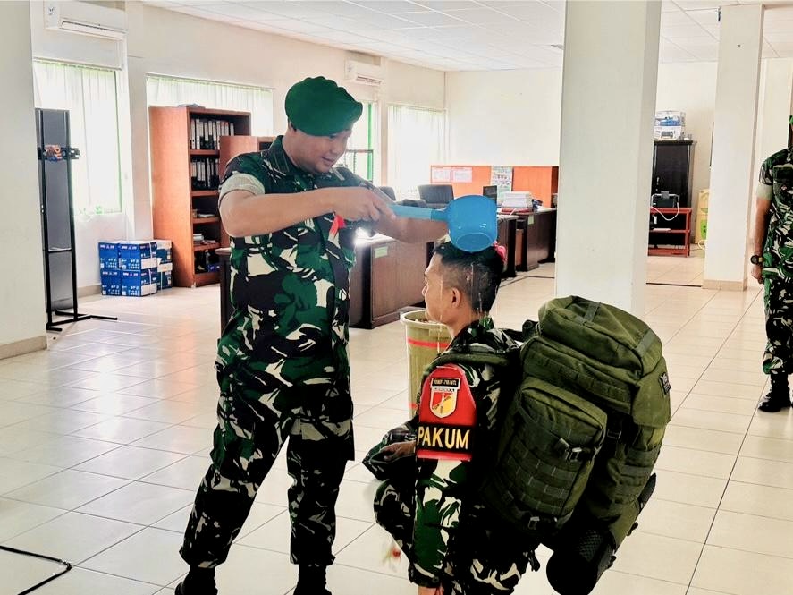 Penyambutan ditandai dengan Penyiraman air kembang sebagai lambang tradisi satuan kepada Letda CHK Diky Stevan Harahap S.H., yang bertempat di Kantor Kumdam XIII/Merdeka, Jalan 14 Februari, Teling-Kota Manado, Kamis (14/8/25).